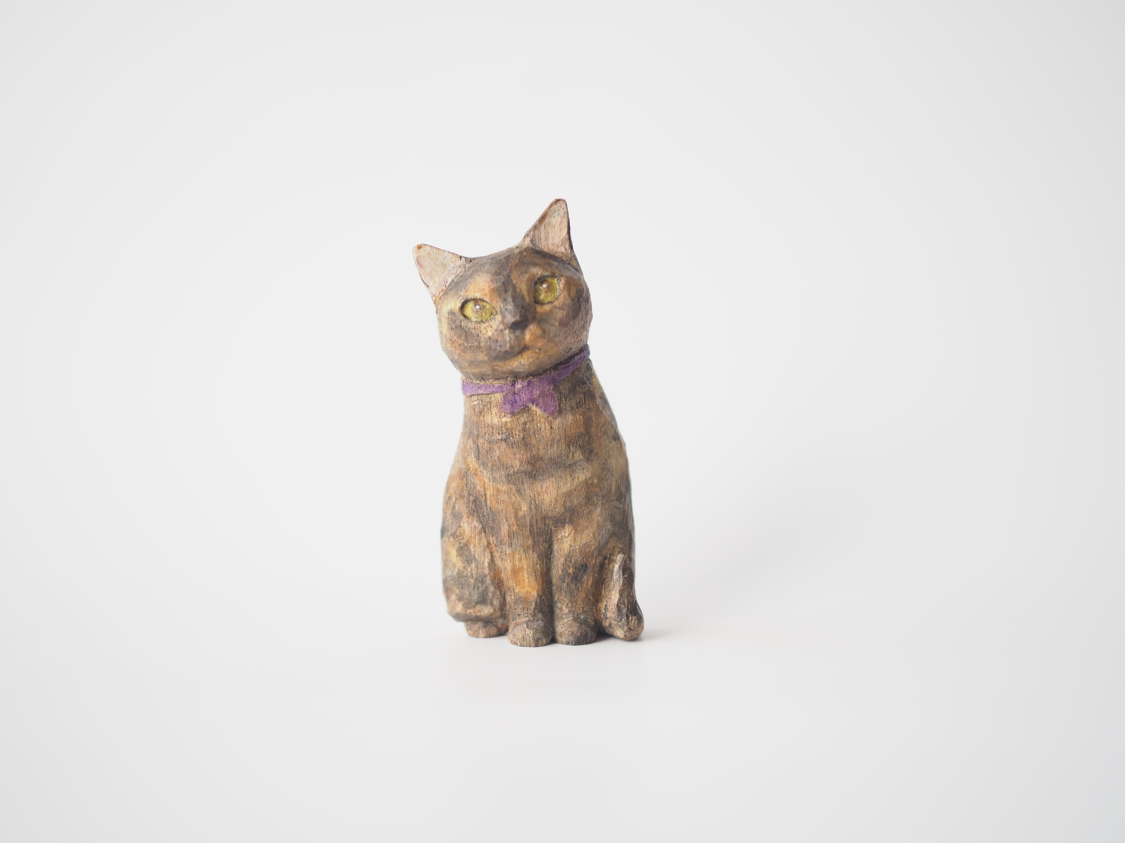 首輪シリーズのサビ猫さんです。紫色の首輪を付けています。